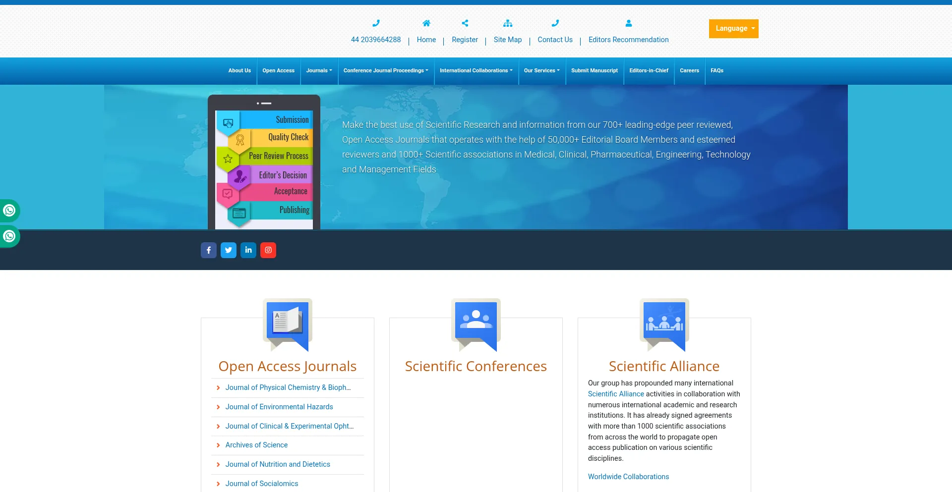 网站上存在社交媒体链接表明 omicsonline.org 在社交媒体上维护官方账户,这是可信度和参与度的积极信号。