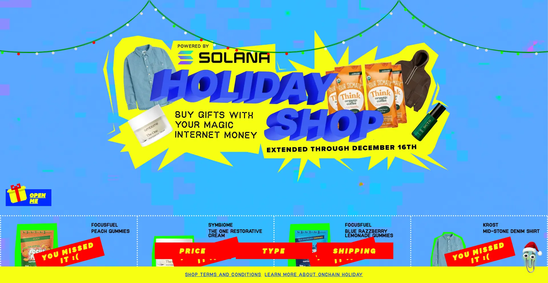 Shop holiday gifts with crypto at Solana’s Onchain Holiday Shop! Pay with stablecoins or memecoins in just a few clicks — all powered by blockchain.