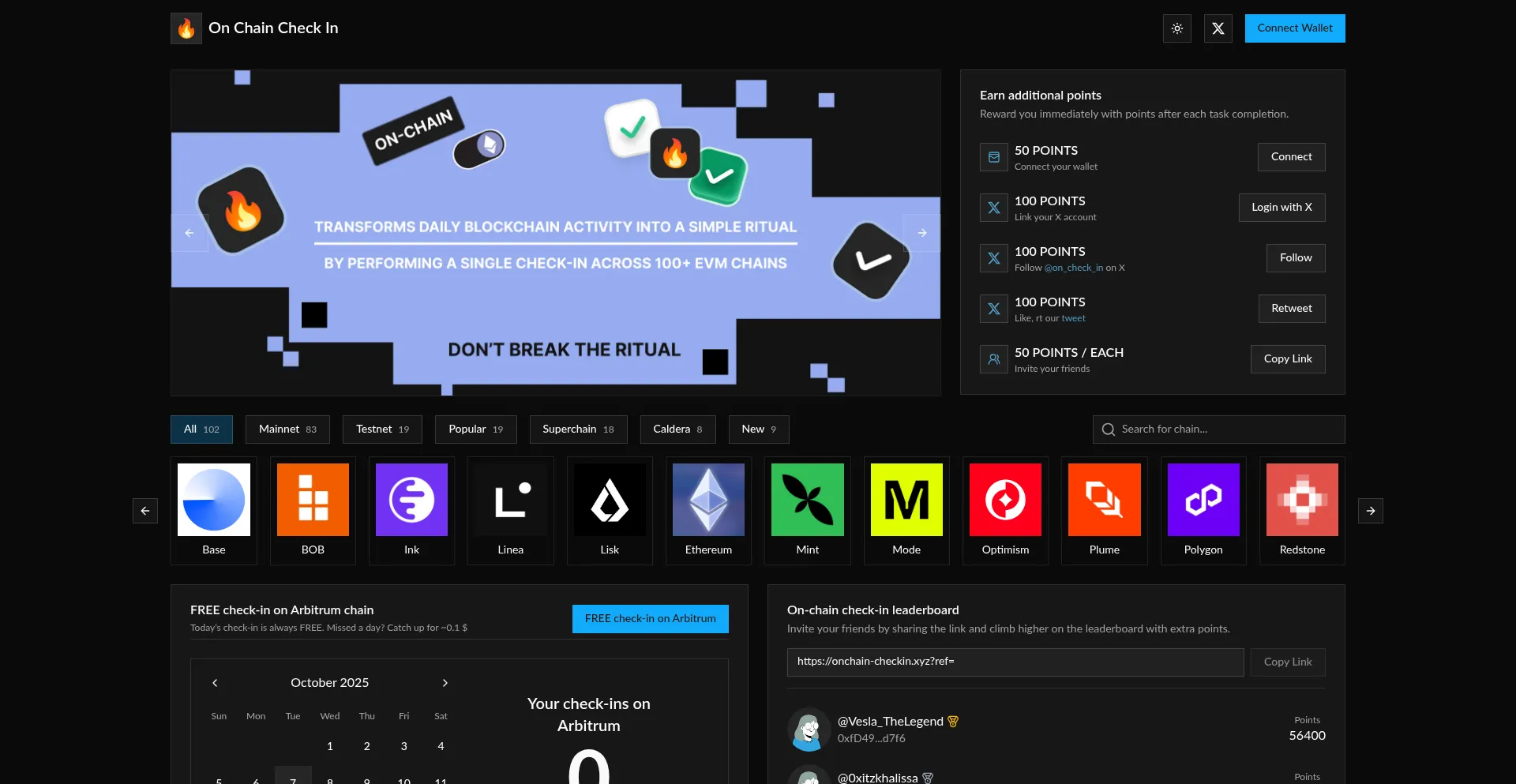 On-chain check-in | Daily Web3 ritual across 100+ EVM chains