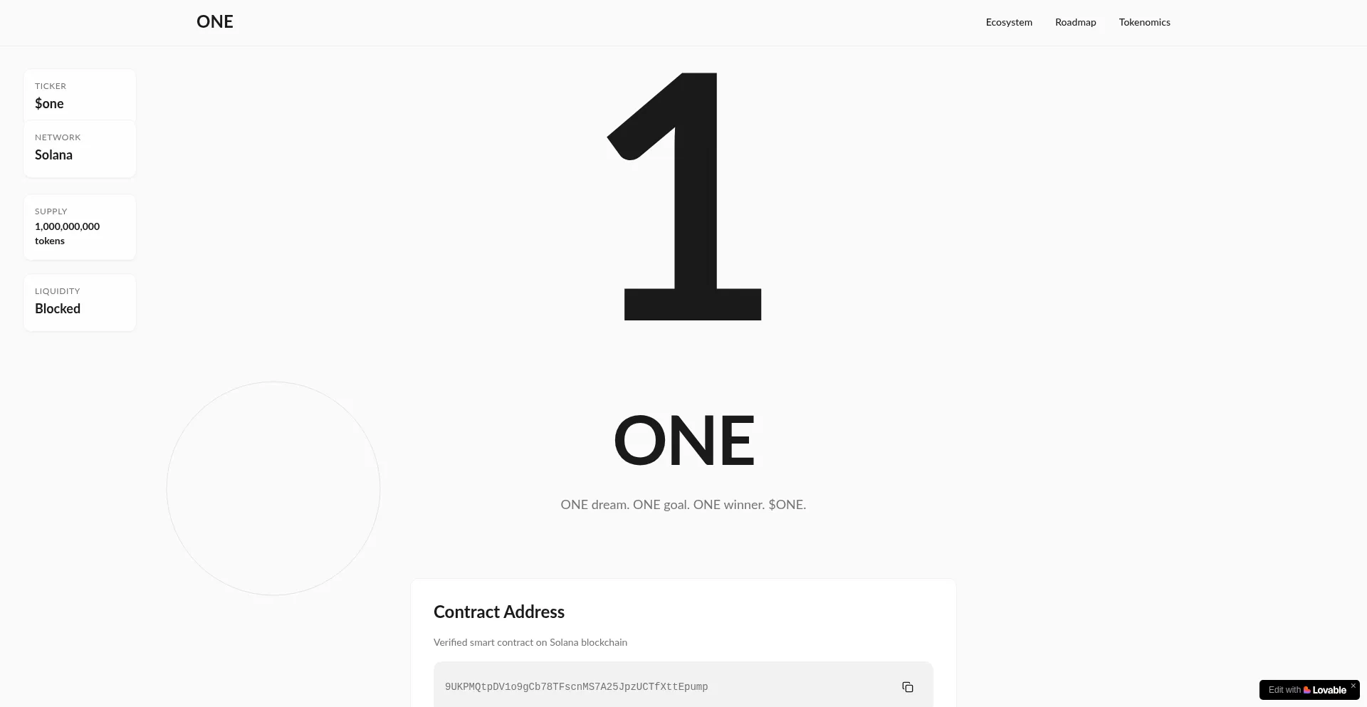 There’s only ONE. $ONE represents victory, unity, and the mindset of being first. Born on Solana, built by the community — for those who never settle for second place. ONE ...