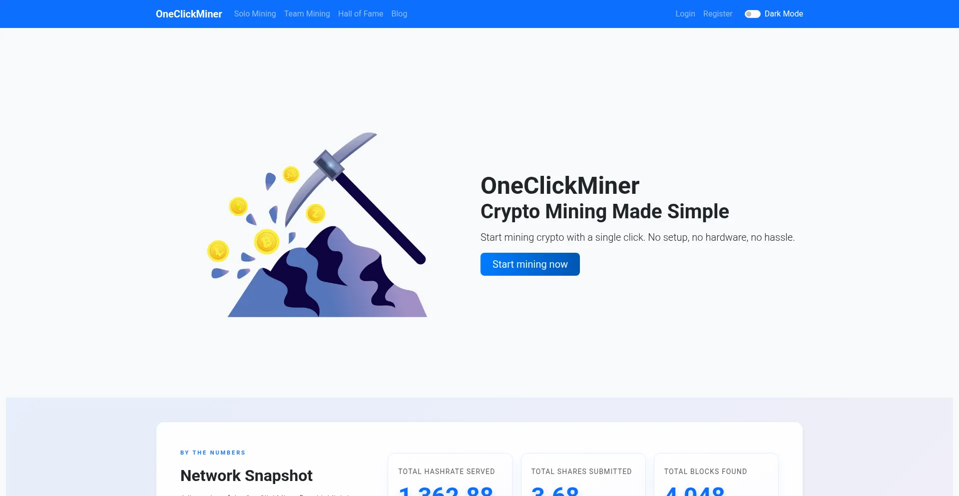 OneClickMiner is a one-click crypto mining platform designed for everyone that wants to dip their toes into the world of cryptocurrency.