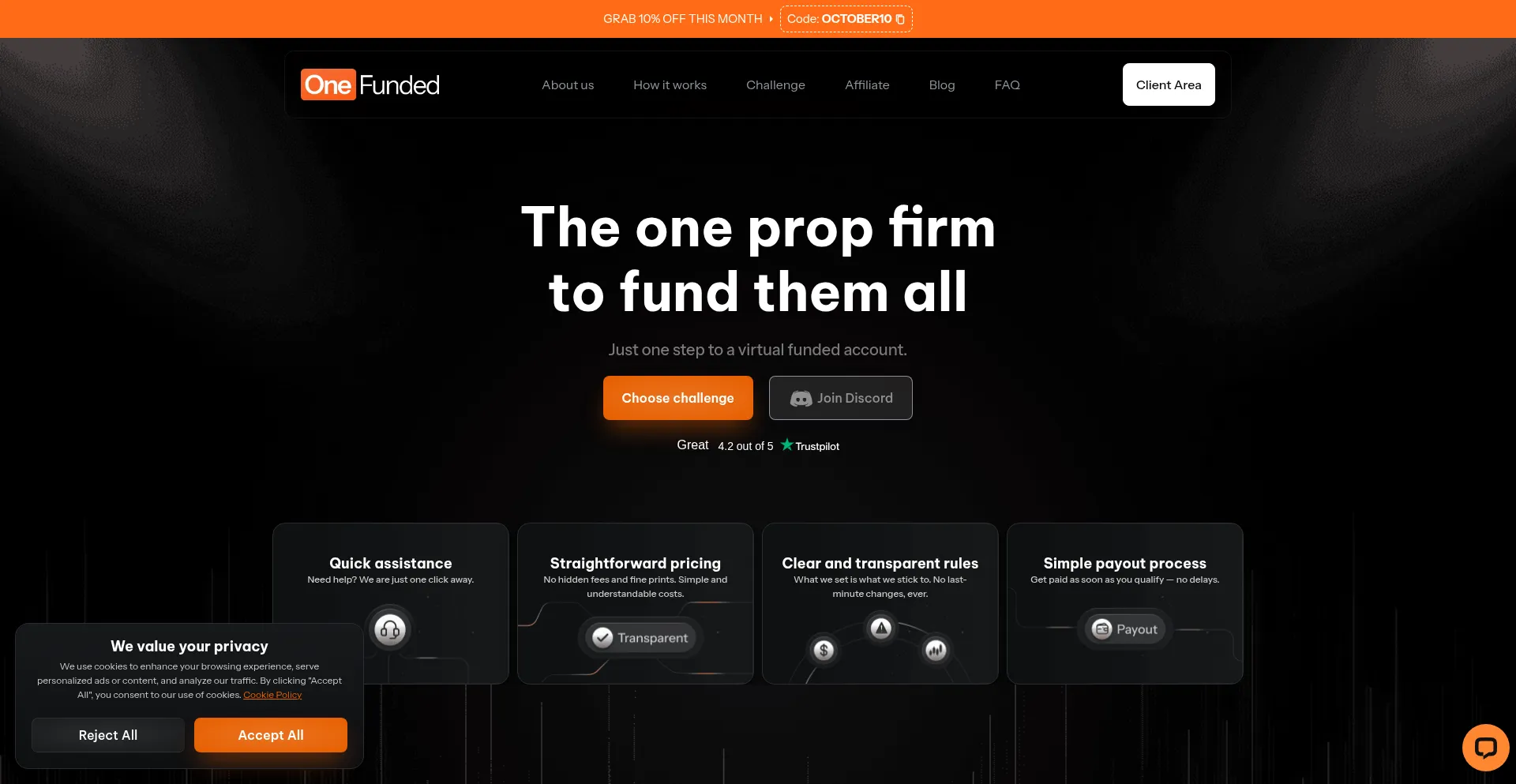 OneFunded is the best prop firm to boost your trading success. Get funded fast, trade risk-free, and keep up to 80% of your profits.