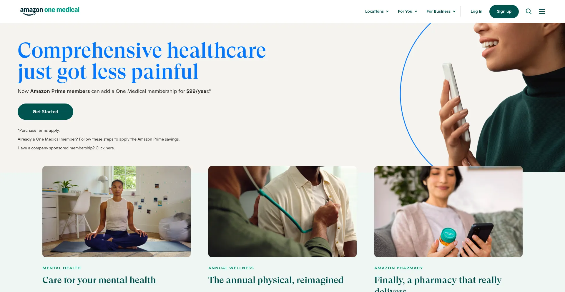 网站上存在社交媒体链接表明 onemedical.com 在社交媒体上维护官方账户,这是可信度和参与度的积极信号。