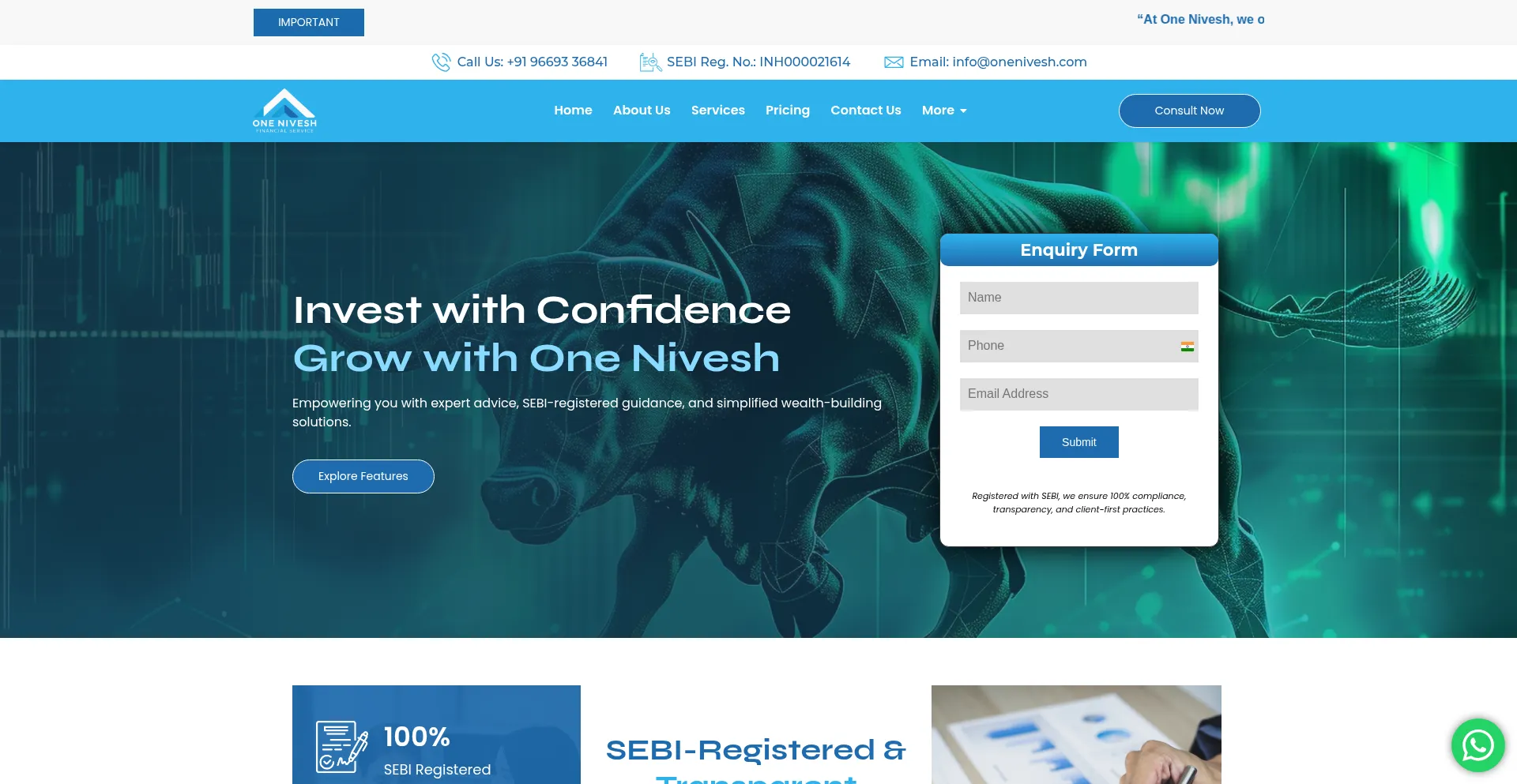 该网站实现数据收集表单,请求个人信息,包括姓名、电子邮件地址、电话号码或其他敏感详细信息。用户应验证 onenivesh.com 的合法性并在提交个人数据前查看隐私政策。