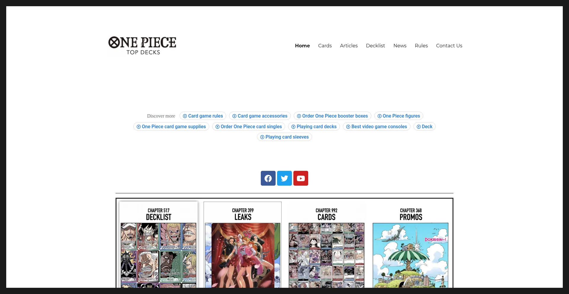 网站上存在社交媒体链接表明 onepiecetopdecks.com 在社交媒体上维护官方账户,这是可信度和参与度的积极信号。