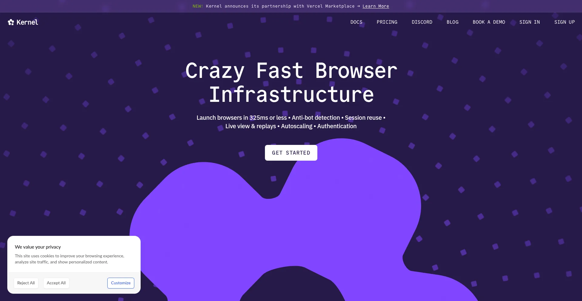 Browser infrastructure for AI agents and web automations. Anti-bot detection, reusable sessions, fast spin-up, and autoscaling browsers.
