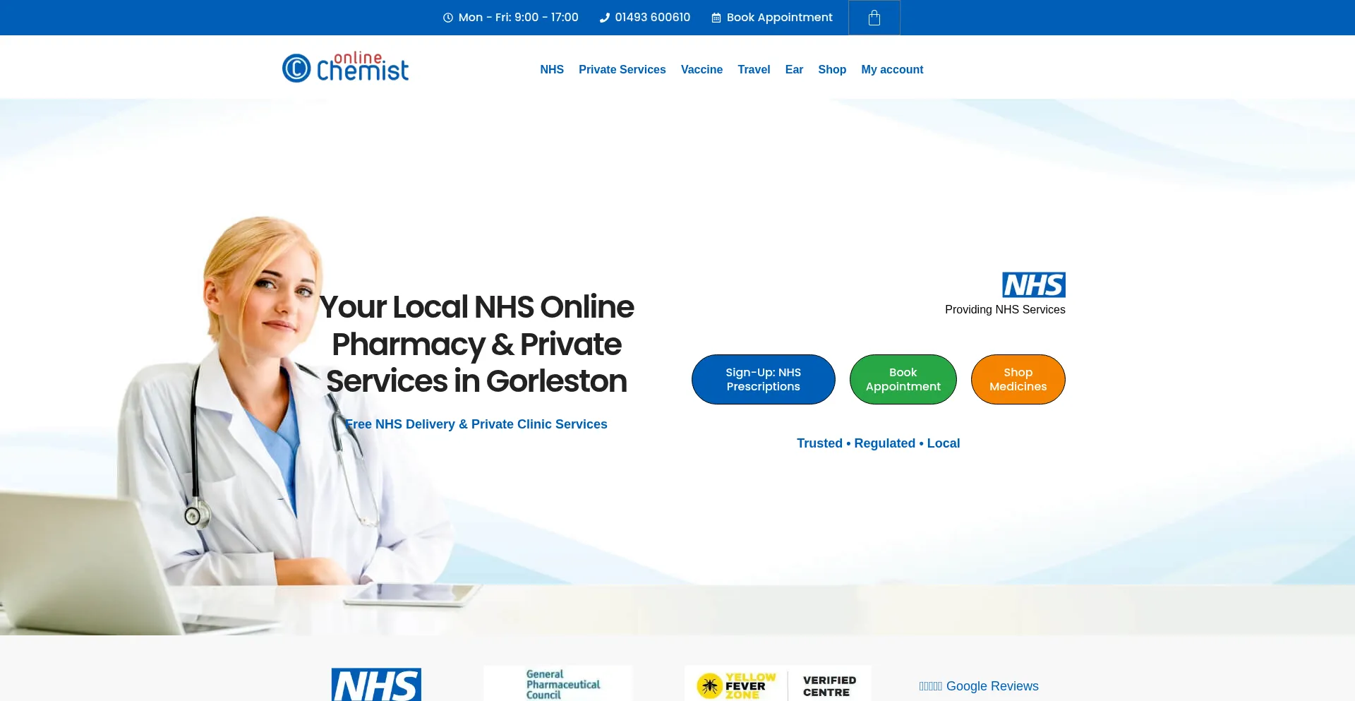NHS online pharmacy in Gorleston, Great Yarmouth. FREE prescriptions delivery, travel jabs, yellow fever vaccine, ear syringing, private blood tests.