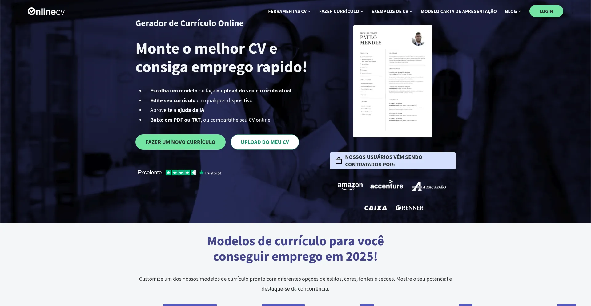Crie o CV perfeito com OnlineCurrículo. Aproveite todos os recursos do gerador de currículo online, com modelos prontos de currículo,