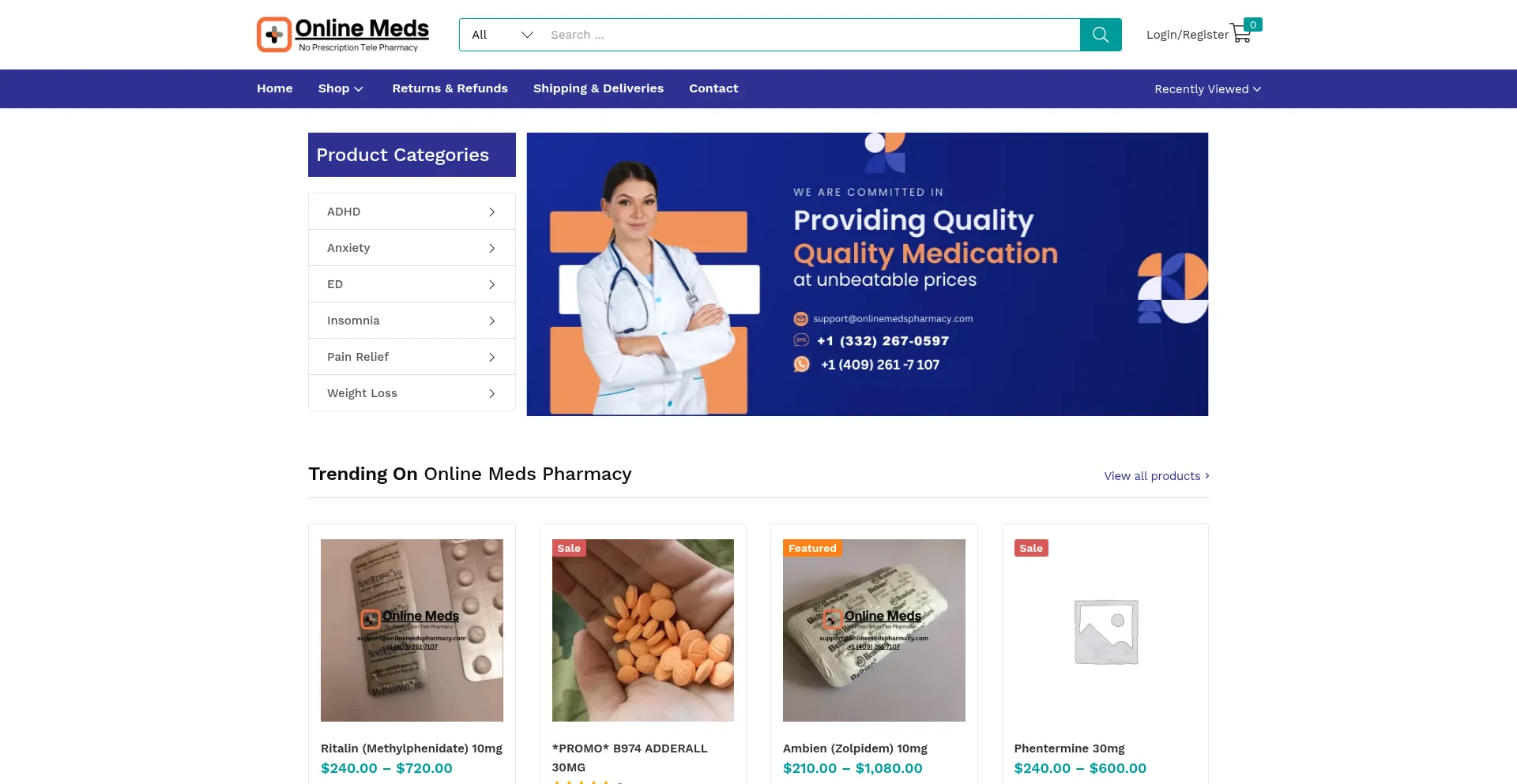 该网站利用流行产品名称和品牌来吸引流量并产生用户兴趣。这些产品可能通过促销活动或折扣策略提供,旨在增加 onlinemedspharmacy.com 的访客参与度和转化率。