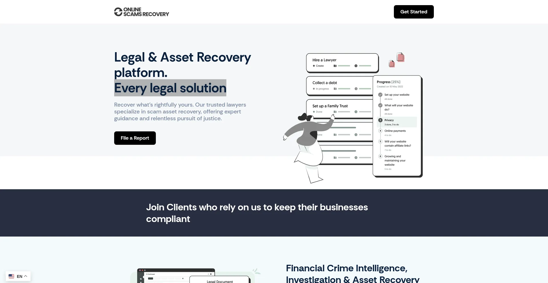 网站 onlinescamsrecovery.com 宣传针对丢失或被盗资产的资金恢复服务。虽然一些在应急费用结构上运营,其他可能需要预付款,这可能表明欺诈运营。在聘请此类服务前验证凭据和监管合规性。