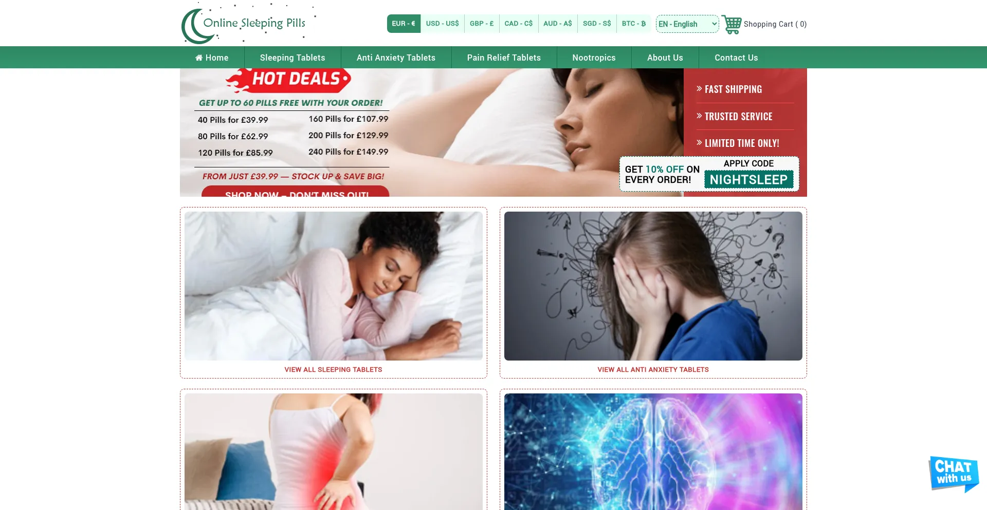 分析表明 onlinesleepingpills.com 作为电子商务平台运营,促进商品或服务的在线交易。该网站实现了购物车功能、支付处理系统和产品目录功能,这些是商业零售运营的典型特征。