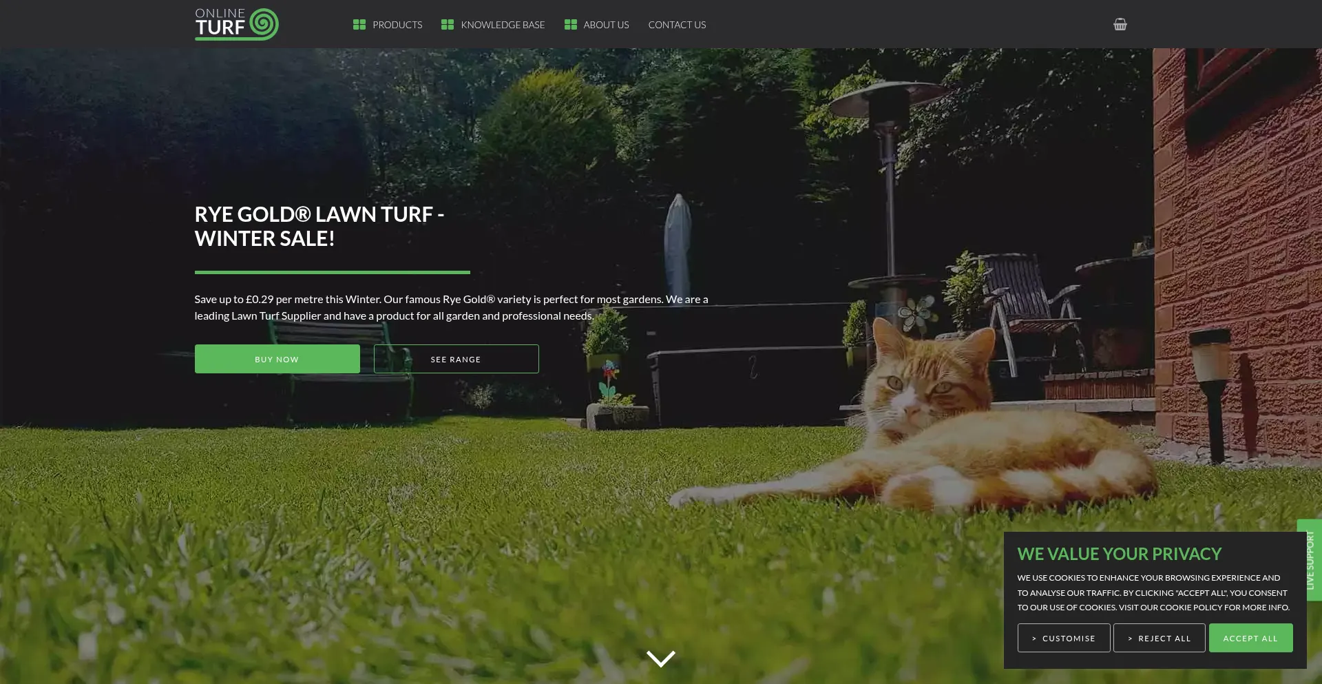 该网站实现符合GDPR或CCPA等隐私法规的cookie同意机制。这表明 onlineturf.co.uk 遵守数据保护标准并为用户提供对个人数据收集实践的控制。