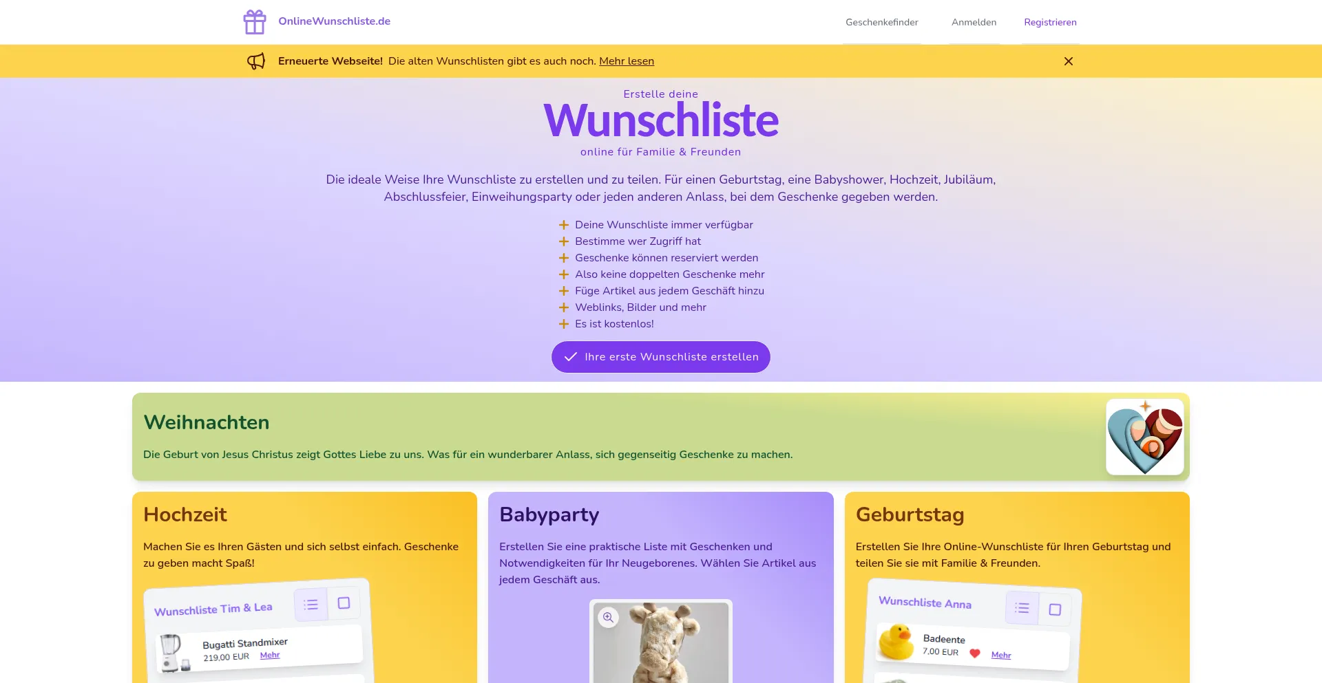 Erstellen Sie eine wunderschön gestaltete Wunschliste und teilen Sie sie mit Ihren Familie & Freunden. Es ist für sie einfach, ein Geschenk von Ihrer Wunschliste zu reservieren.