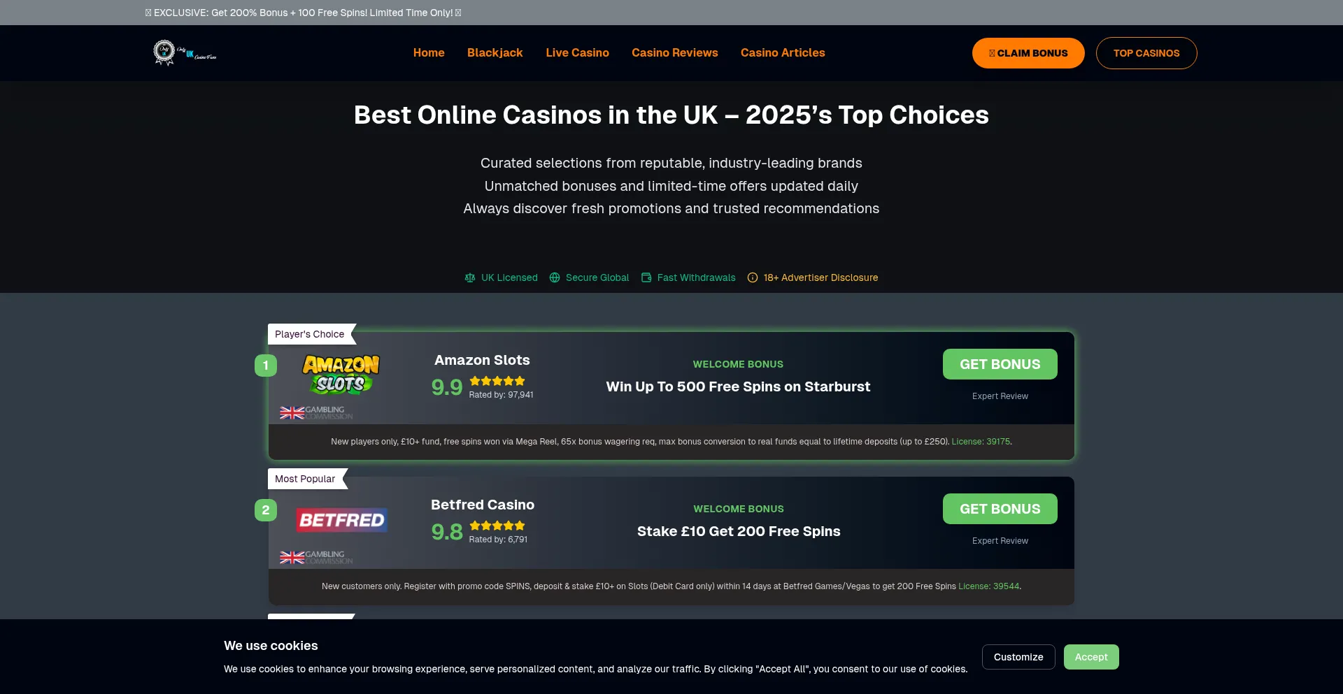 Discover the best online offers, bonuses, and deals all in one place. Save money and find top-rated promotions handpicked for you at Only UK Casin10 Fans.