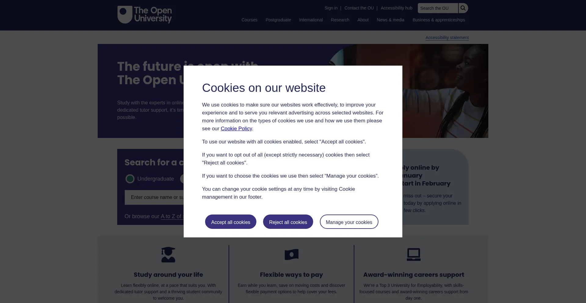 The Open University offers flexible full-time and part-time study, supported distance and open learning for undergraduate and postgraduate courses and qualifications.