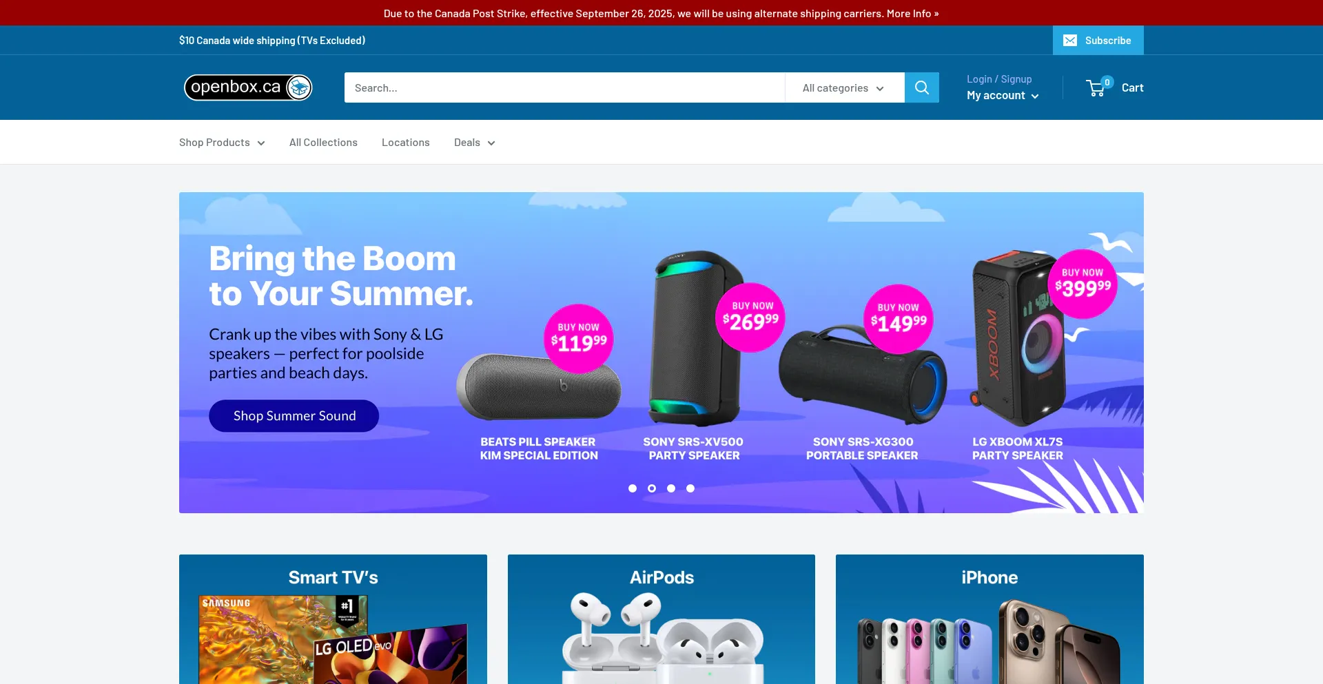 Supplying discounted open box electronics from locations in British Columbia, Alberta and throughout Canada.