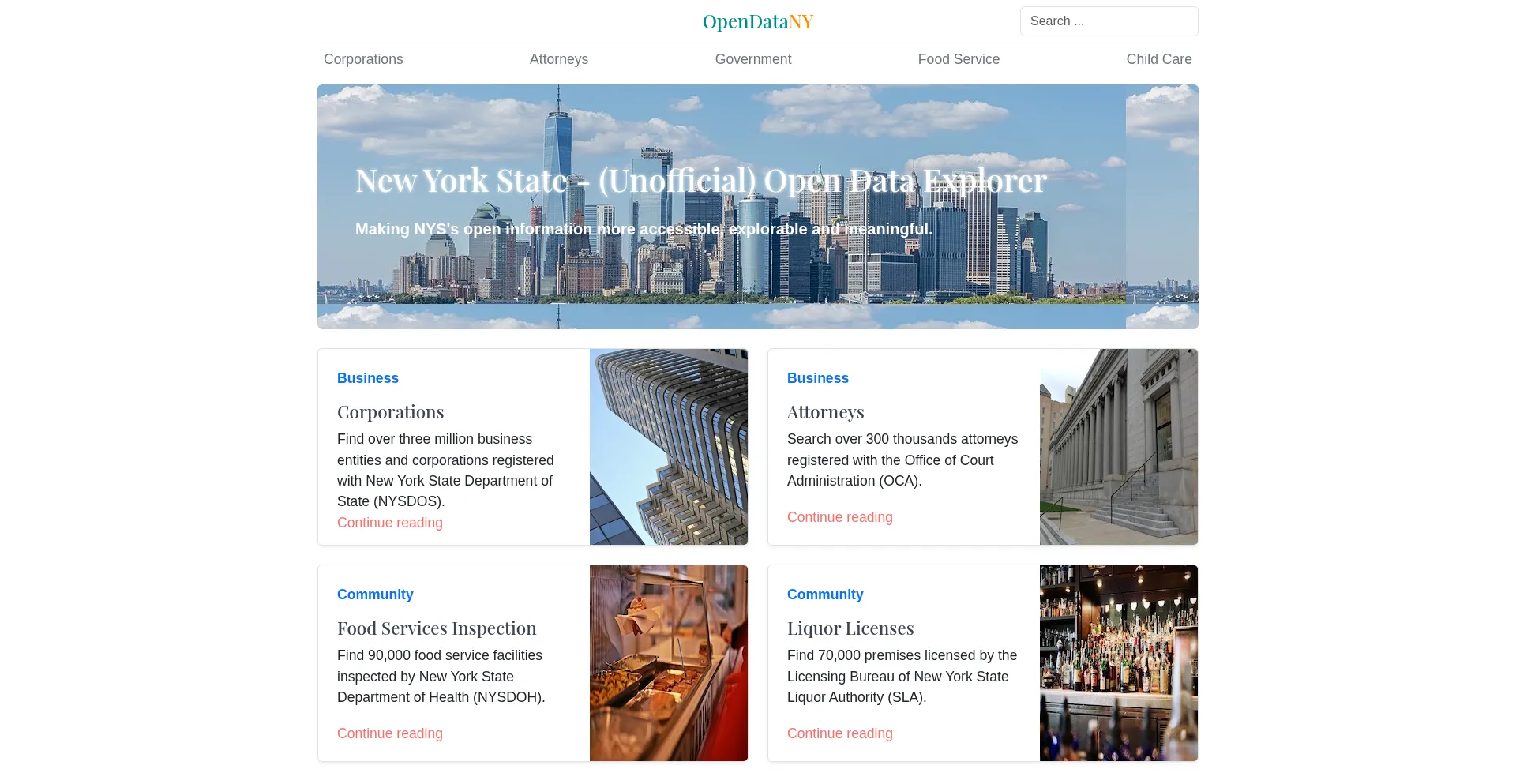OpenDataNY.com makes NYS's open data more accessible and explorable, and offers users many ways to interact with the data. This is a collaboration of municipal government and th...