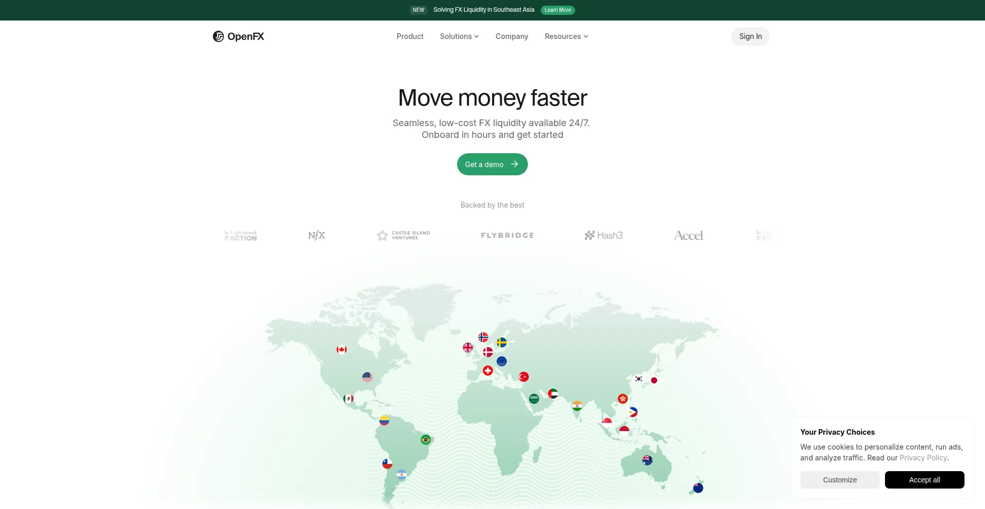 OpenFX delivers real-time cross-border FX payments with 90% faster settlement and 80% lower costs than traditional FX. Our global network enables 24/7 money movement.