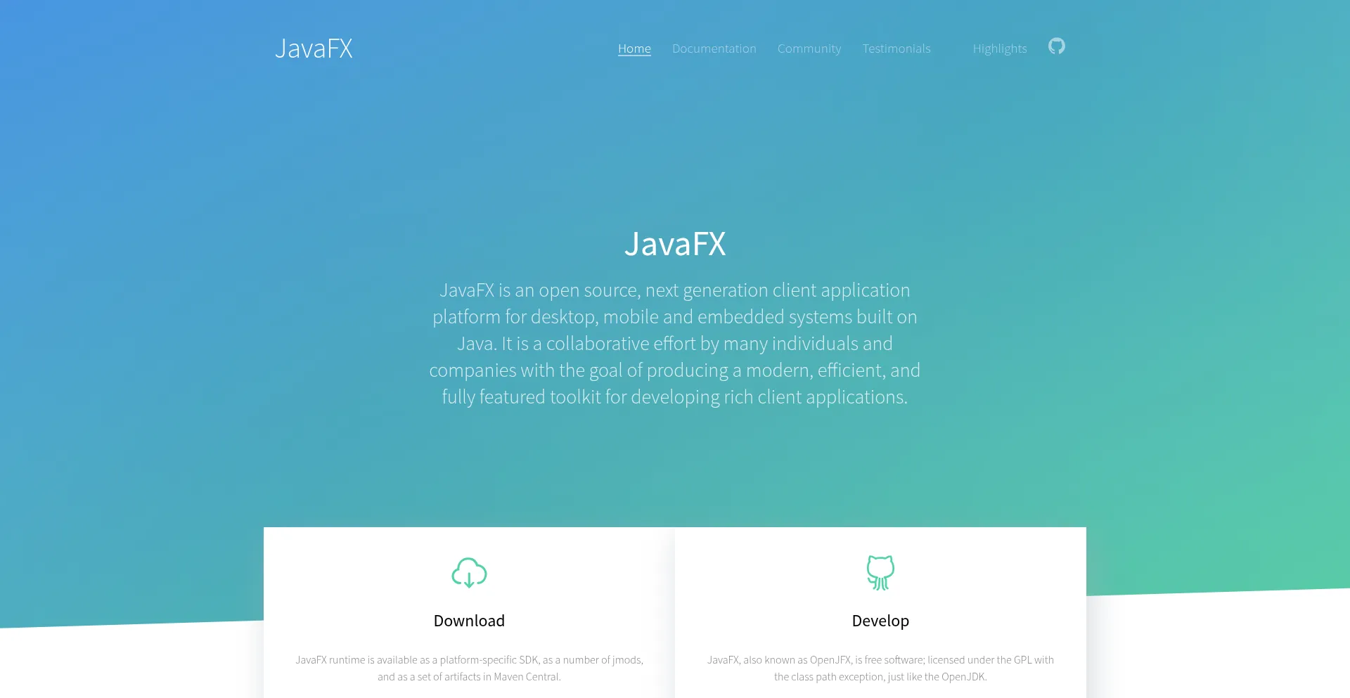openjfx.io 使用 Bootstrap,这是一个广泛采用的开源响应式网页开发框架。Bootstrap 通过标准化组件和样式实现移动友好界面的高效创建。