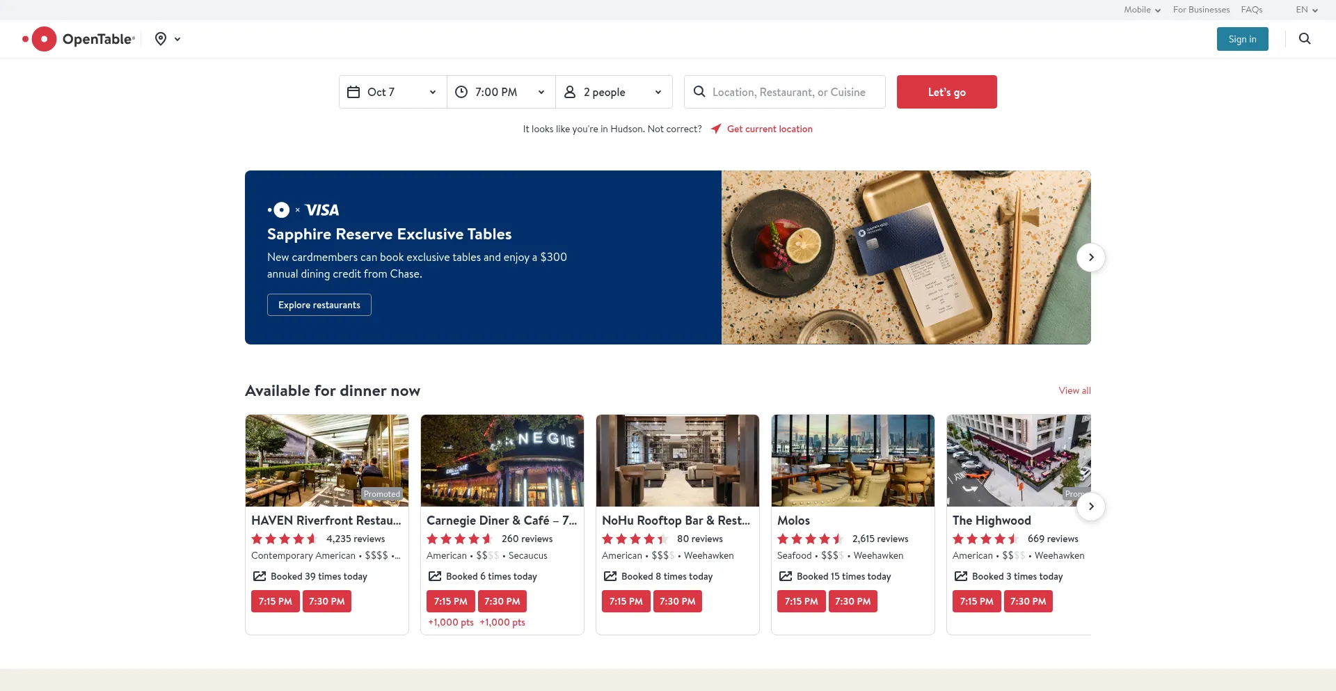 Book online, read restaurant reviews from diners, and earn points towards free meals. OpenTable is a real-time online booking network for fine dining restaurants.