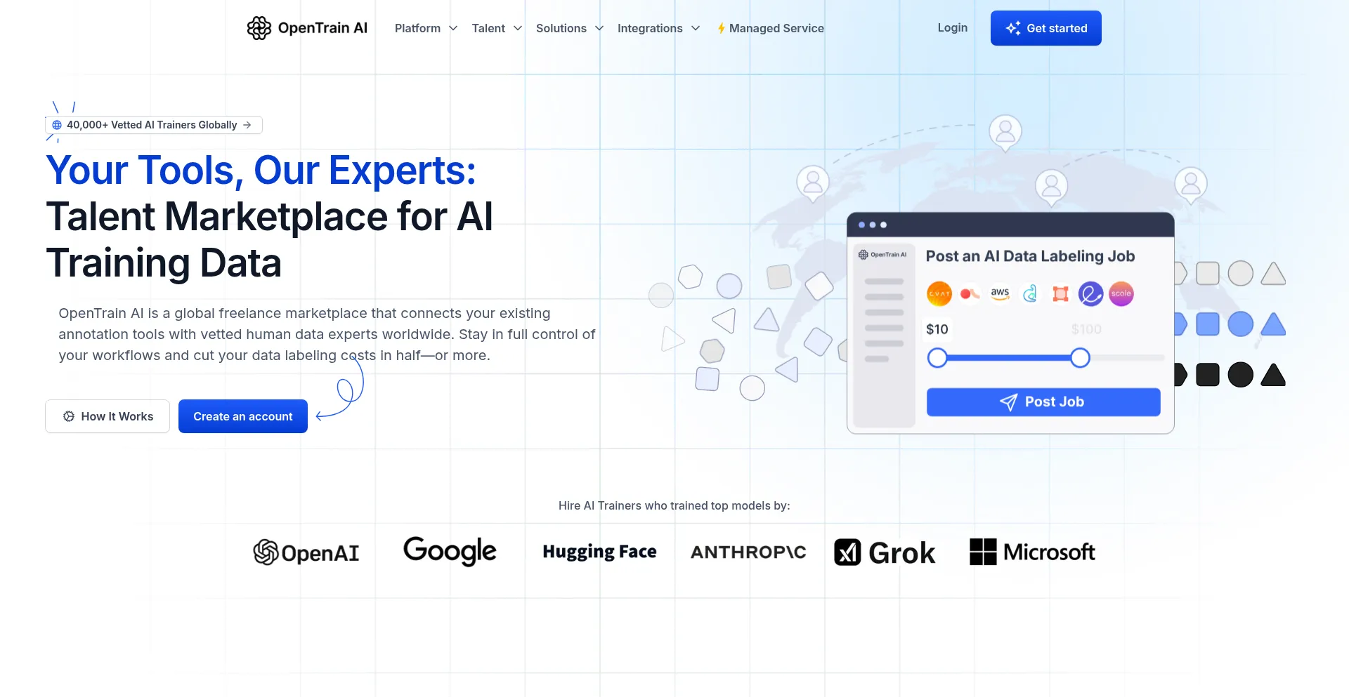 OpenTrain AI lets you directly hire vetted human data experts globally, using your preferred annotation software. Reduce costs, maintain control, and quickly build high-quality ...