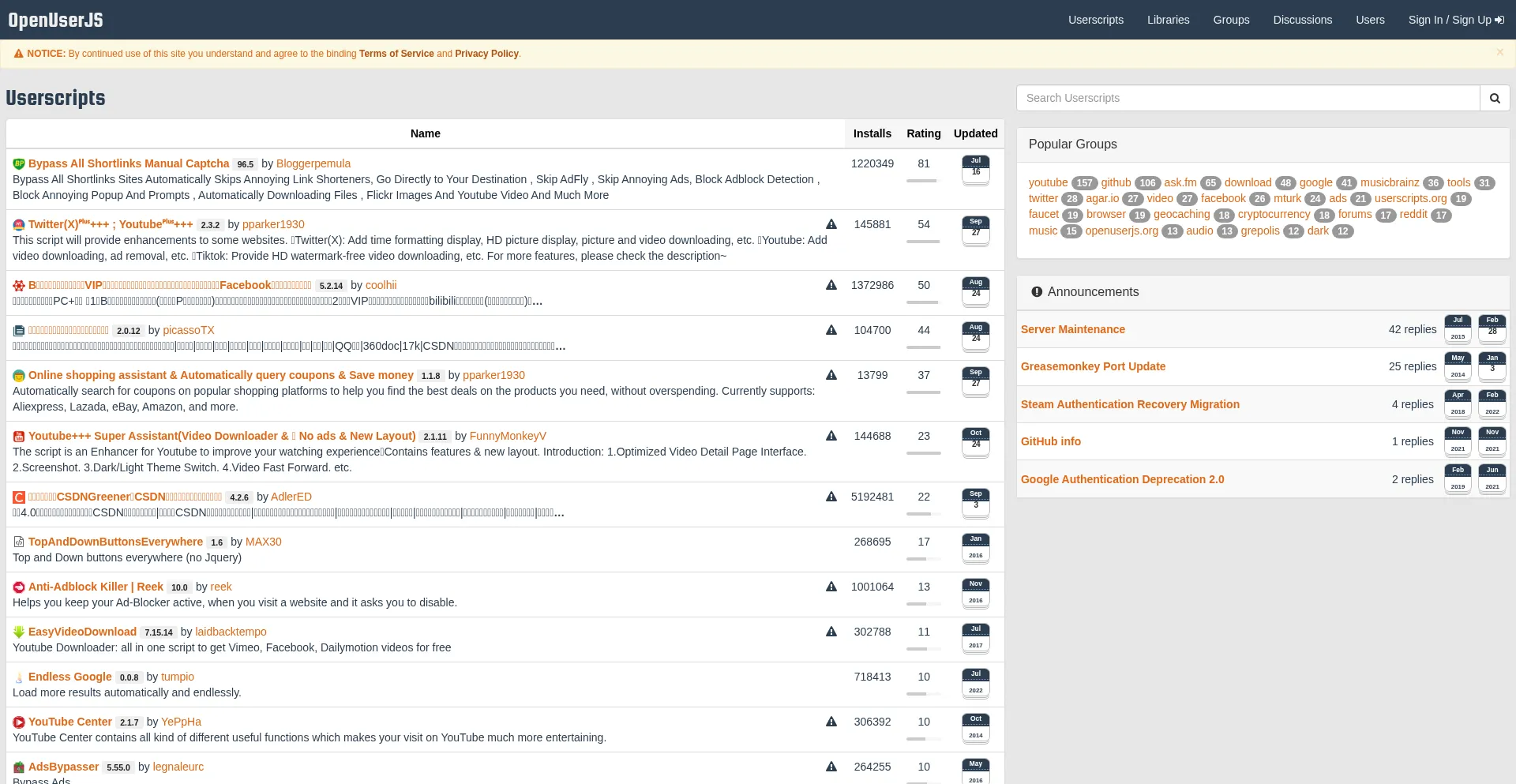 openuserjs.org 使用 Bootstrap,这是一个广泛采用的开源响应式网页开发框架。Bootstrap 通过标准化组件和样式实现移动友好界面的高效创建。