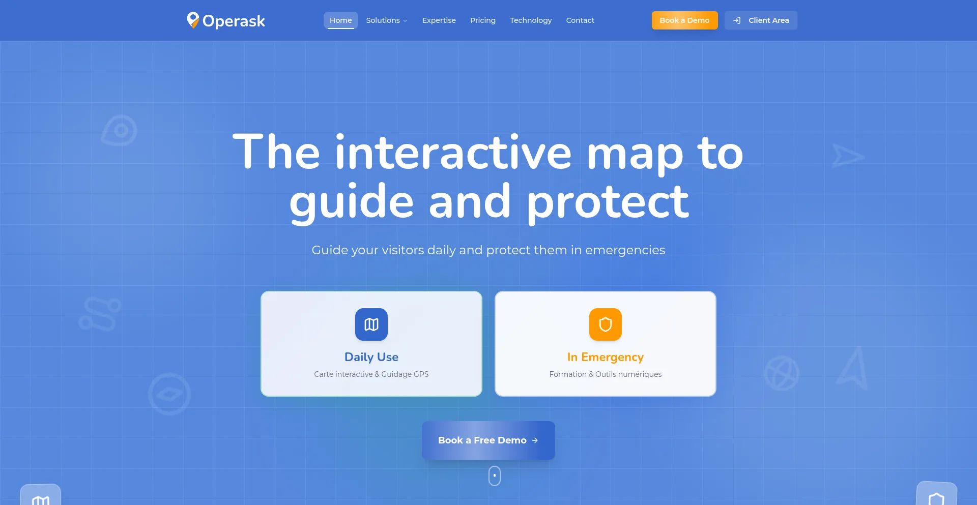 Solution digitale tout-en-un : carte interactive avec guidage GPS pour le tourisme et gestion des exercices d'évacuation pour la sécurité. Sans téléchargement, accessible v...