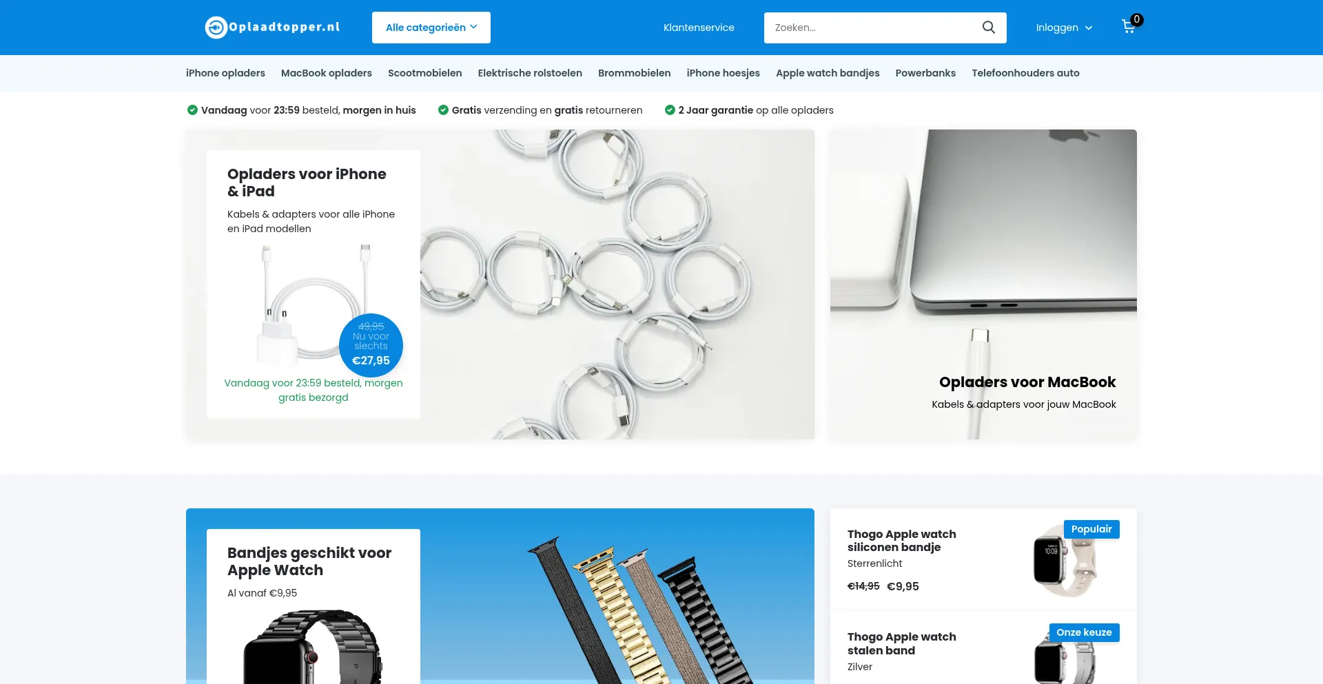 Bij Oplaadtopper.nl bestel je voor een lage prijs een oplader voor je iPhone, iPad of Macbook