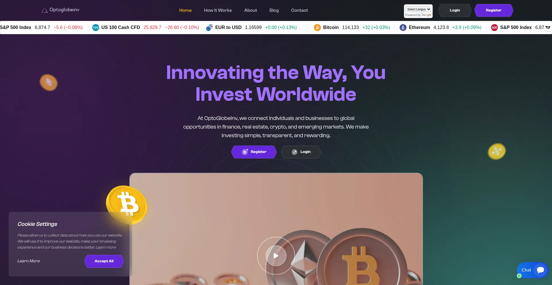该网站实现数据收集表单,请求个人信息,包括姓名、电子邮件地址、电话号码或其他敏感详细信息。用户应验证 optoglobeinv.com 的合法性并在提交个人数据前查看隐私政策。