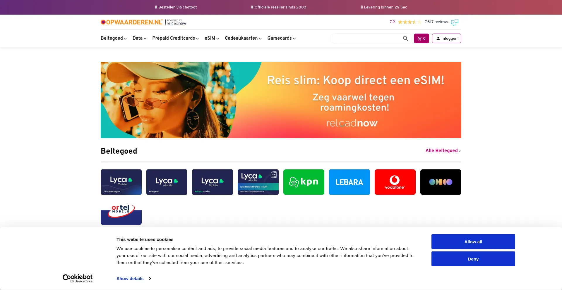 Beltegoed, cadeaukaarten en meer bij Opwaarderen.nl. Ontvang je code binnen 29 seconden. ✓ Alle providers ✓ 24/7 beschikbaar ✓ Veilig betalen met iDEAL, PayPal