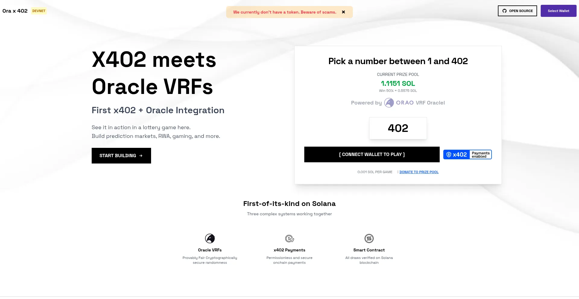 On-chain app on Solana to showcase x402 Payments and Oracle VRF