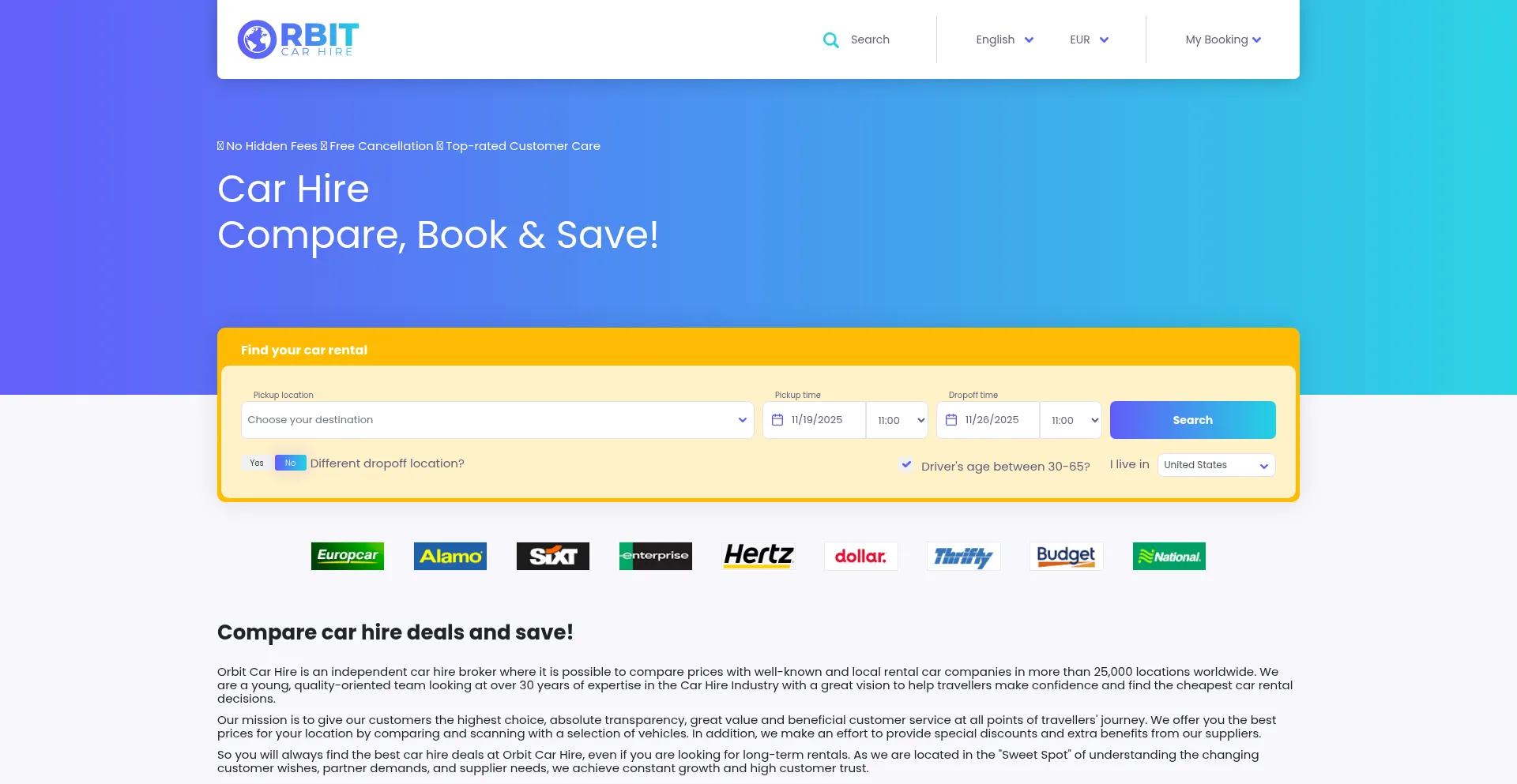 Car Hire Comparison & Reviews With Free Cancellation - Orbit Car Hire
