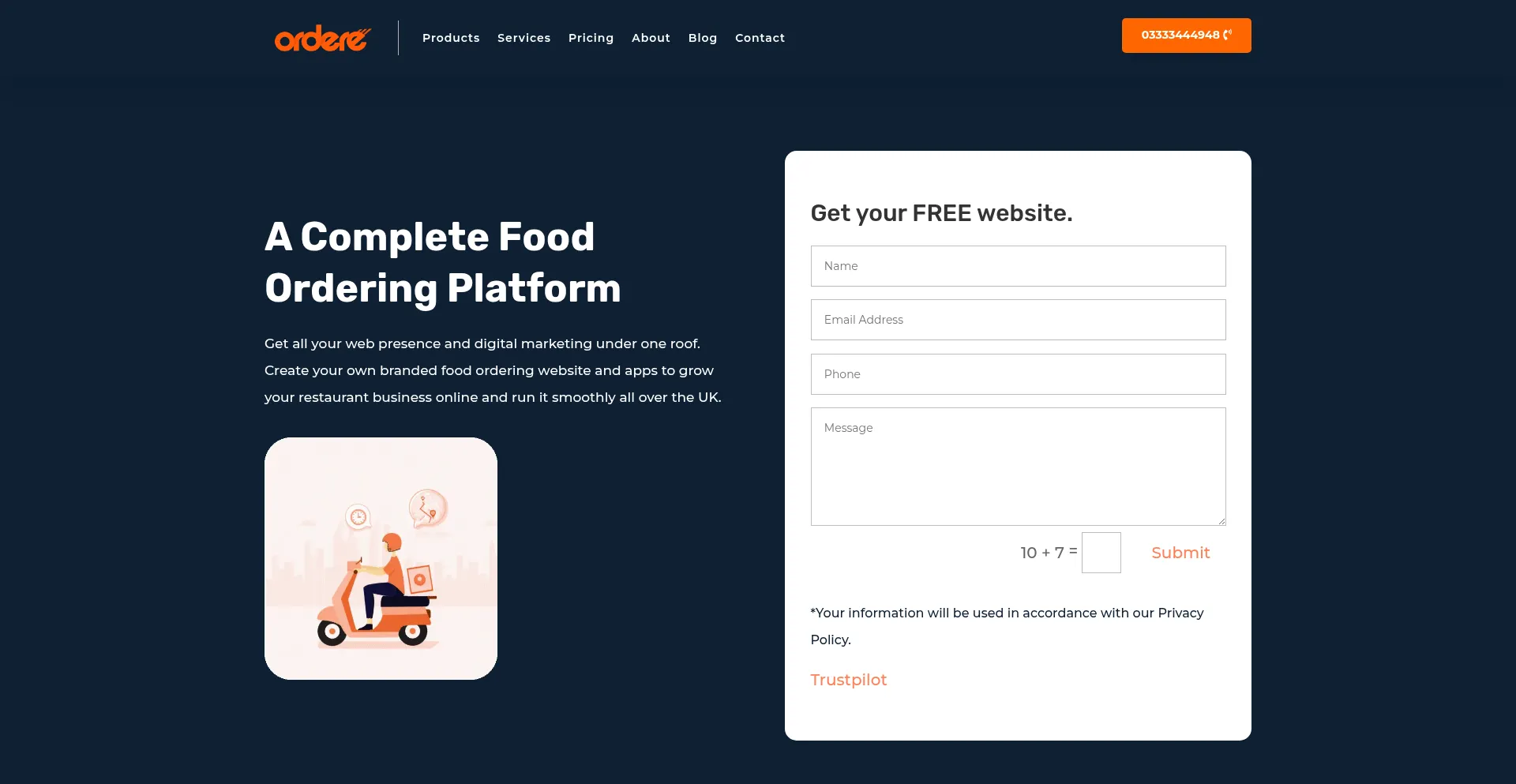 该网站实现数据收集表单,请求个人信息,包括姓名、电子邮件地址、电话号码或其他敏感详细信息。用户应验证 ordere.co.uk 的合法性并在提交个人数据前查看隐私政策。