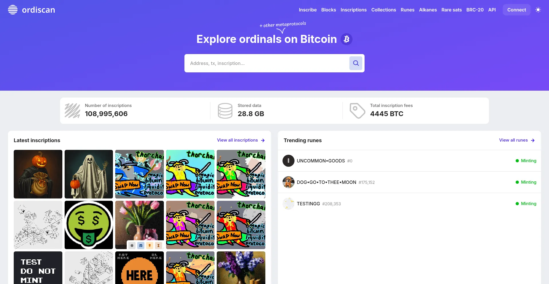 Explore ordinals and inscriptions on Bitcoin. Search and browse inscriptions, runes, rare sats, BRC-20, and more...