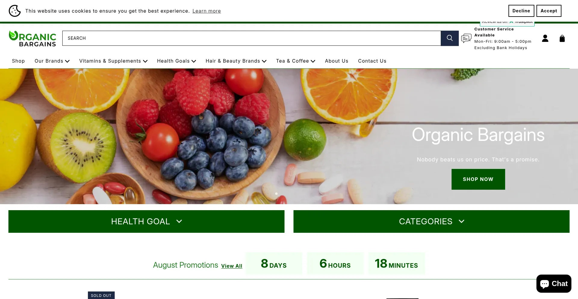 该网站实现符合GDPR或CCPA等隐私法规的cookie同意机制。这表明 organicbargains.co.uk 遵守数据保护标准并为用户提供对个人数据收集实践的控制。