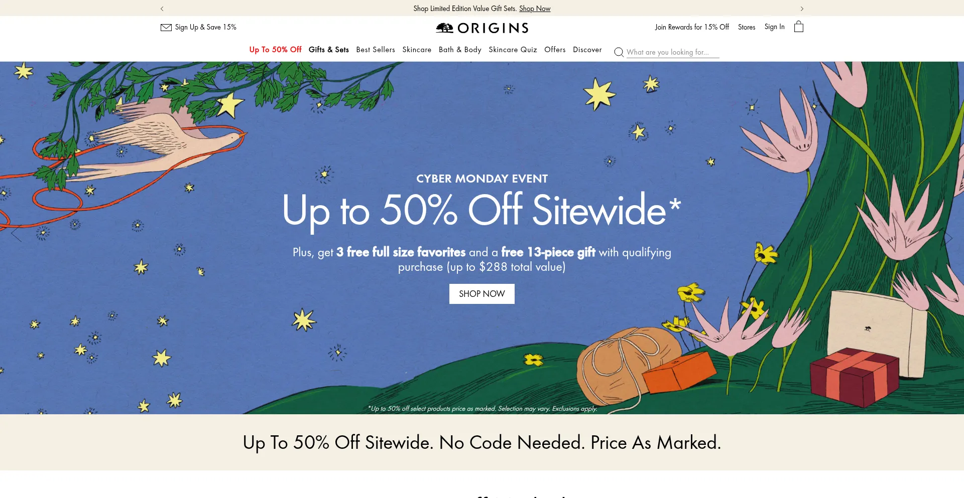Cyber Deal: Up to 50% Sitewide + 3 Free Full Size Gifts | Origins