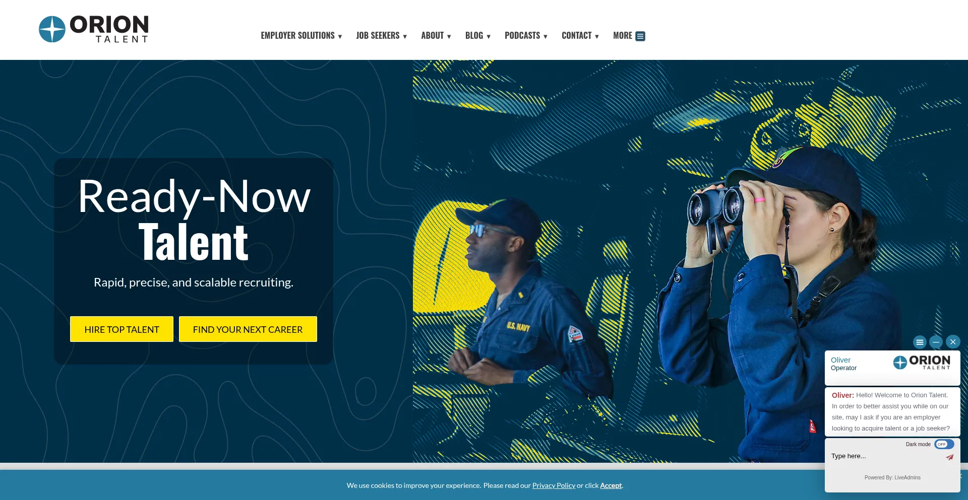 Orion Talent provides Veteran hiring, recruitment optimization, and skilled talent acquisition services to businesses nationwide.