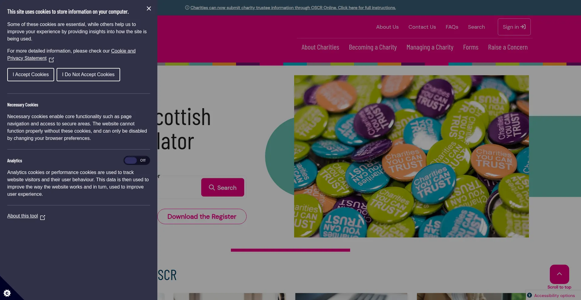 该网站实现符合GDPR或CCPA等隐私法规的cookie同意机制。这表明 oscr.org.uk 遵守数据保护标准并为用户提供对个人数据收集实践的控制。