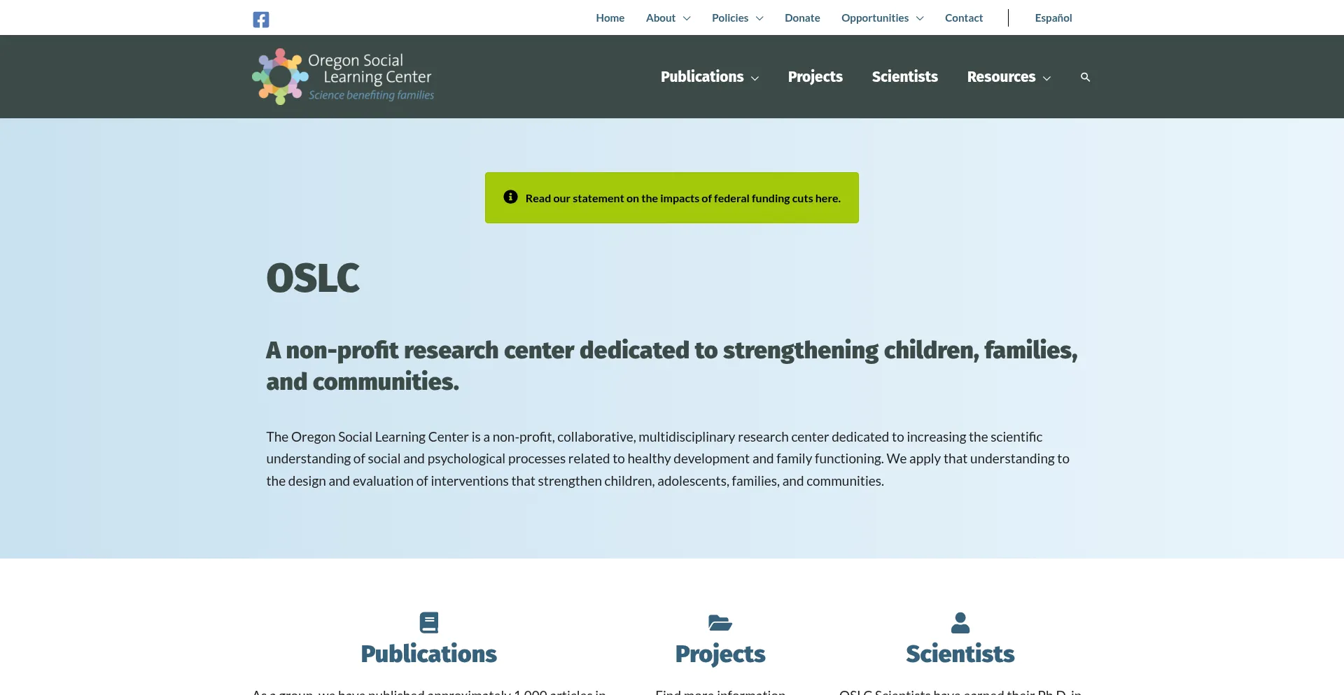 The Oregon Social Learning Center is a non-profit, collaborative, multidisciplinary research center dedicated to increasing the scientific understanding of social and psychologi...