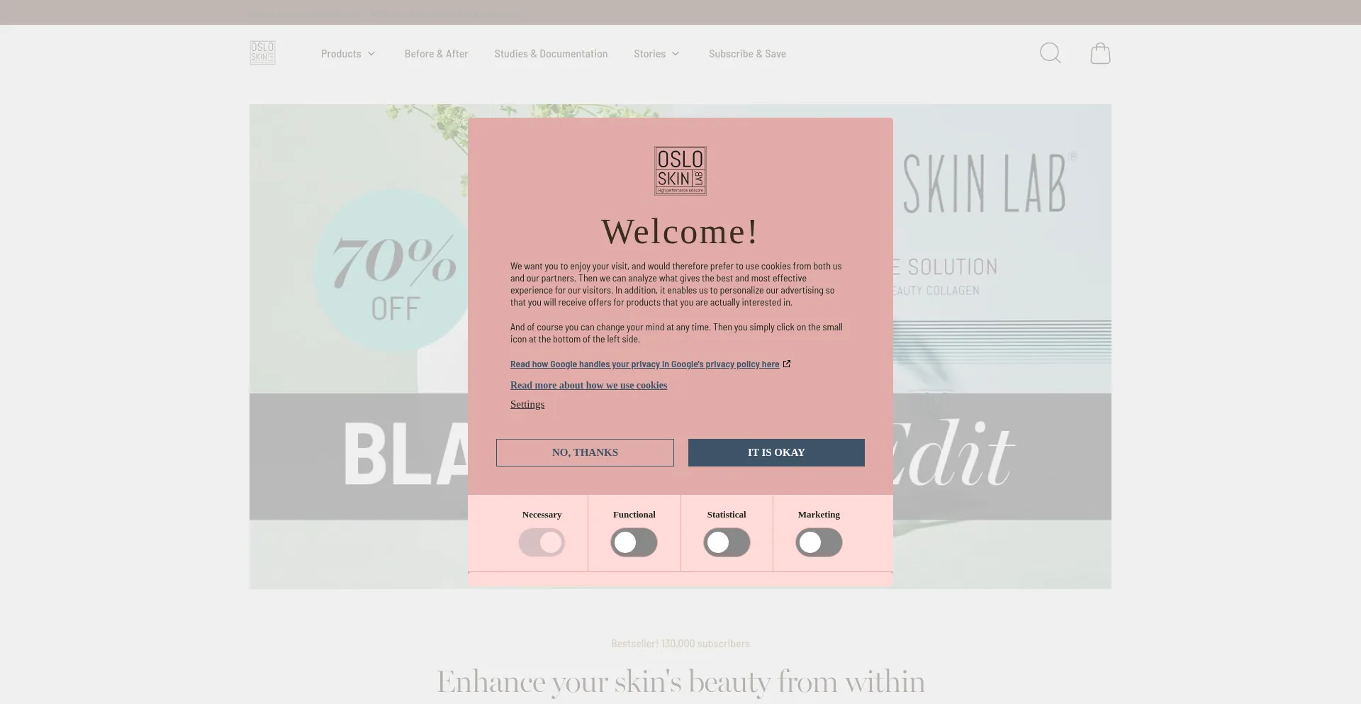 该网站实现符合GDPR或CCPA等隐私法规的cookie同意机制。这表明 osloskinlab.co.uk 遵守数据保护标准并为用户提供对个人数据收集实践的控制。