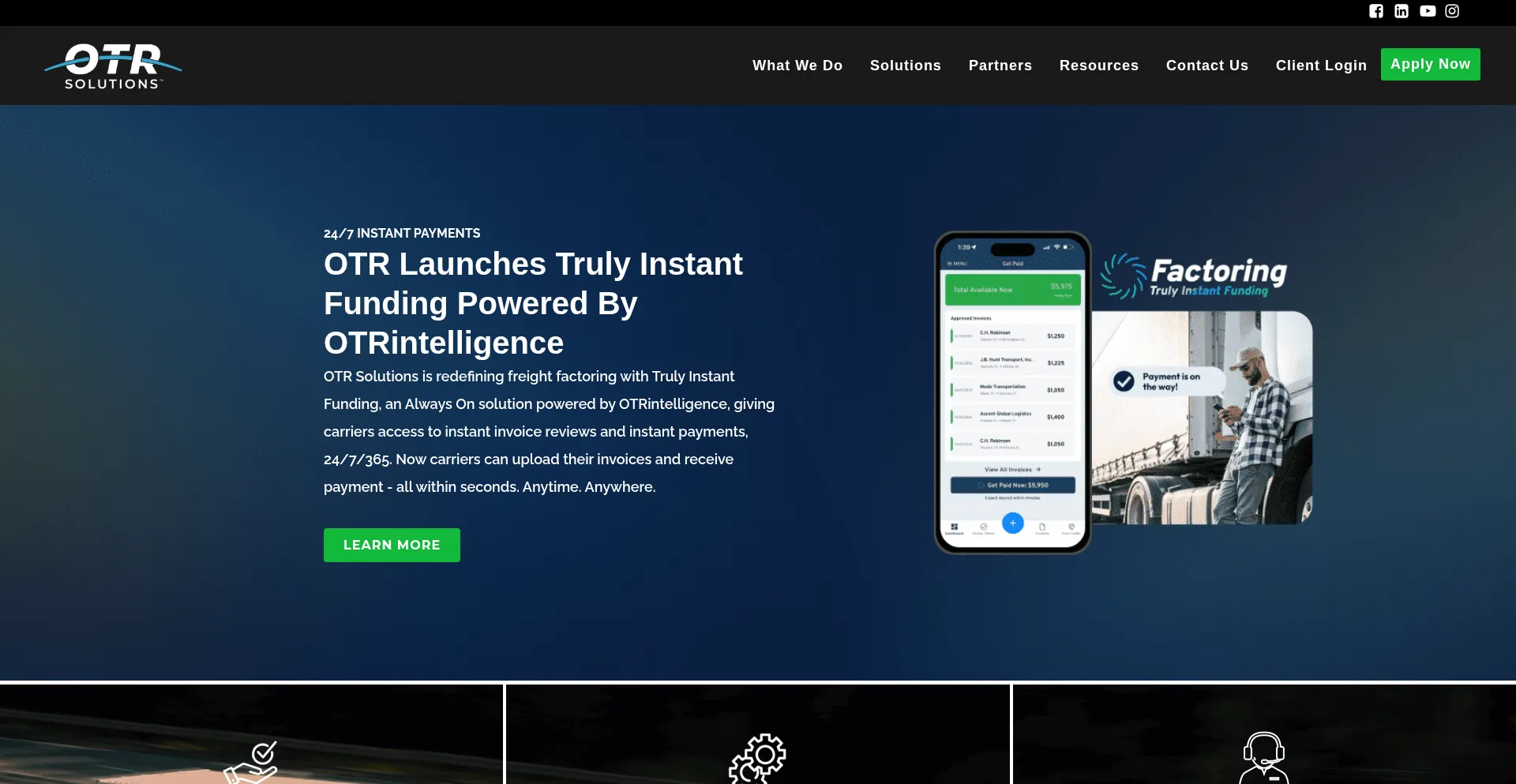 Truly Instant Funding without cutoffs. From transportation factoring to fuel cards, discover how OTR Solutions can solve your cashflow problems.