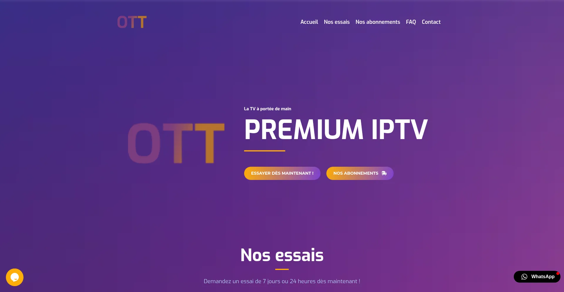 Site Officiel OTT PREMIUM . Livraison 5Min après la commande par Email ou Watshap Toutes les chaînes du monde - Pack sport complet - Pack France et Europe - Films et séries 4K.