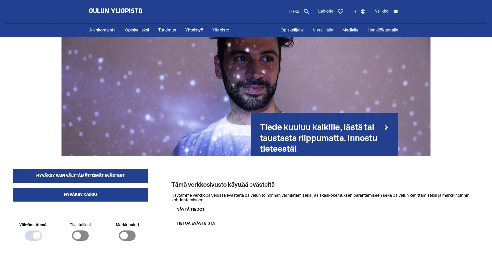 oulu.fi 使用 Google Tag Manager 在其网站上添加和更新追踪代码(标签)。