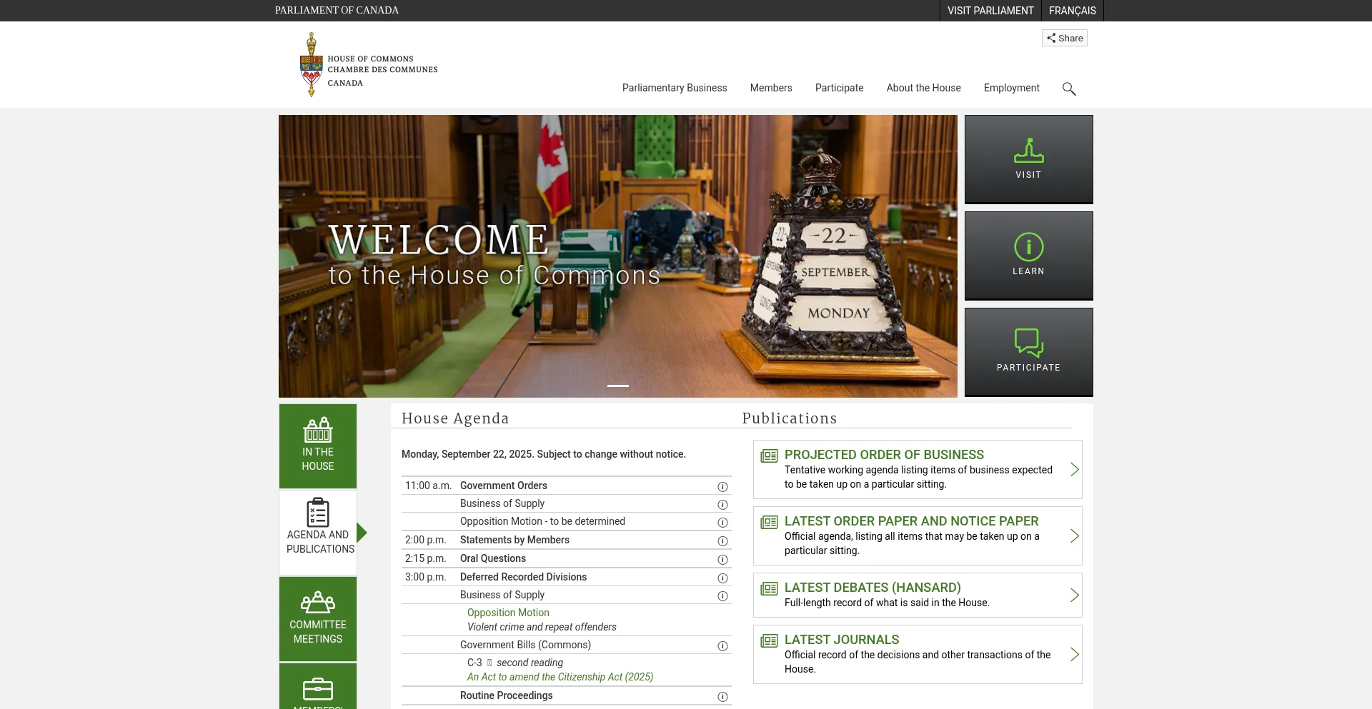 Welcome to the House of Commons of Canada - House of Commons of Canada