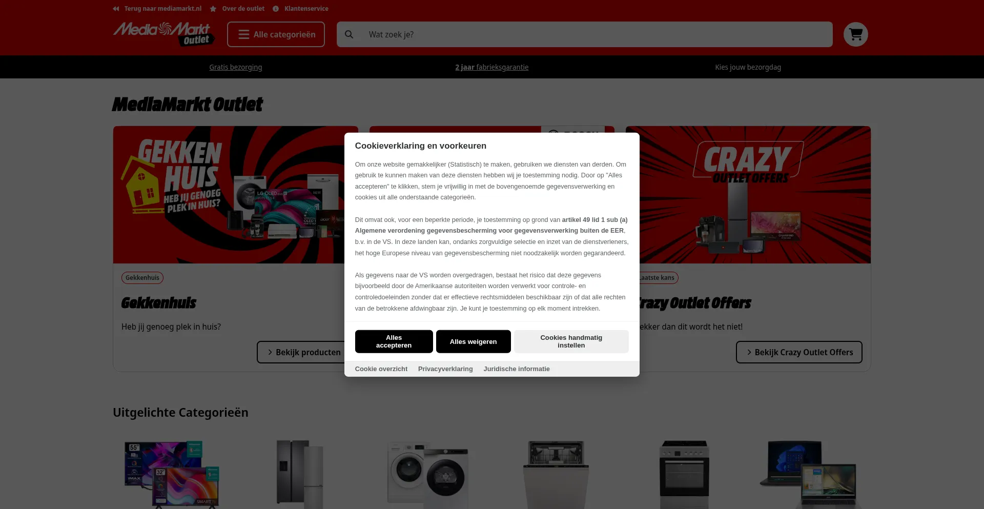 该网站实现符合GDPR或CCPA等隐私法规的cookie同意机制。这表明 outlet.mediamarkt.nl 遵守数据保护标准并为用户提供对个人数据收集实践的控制。