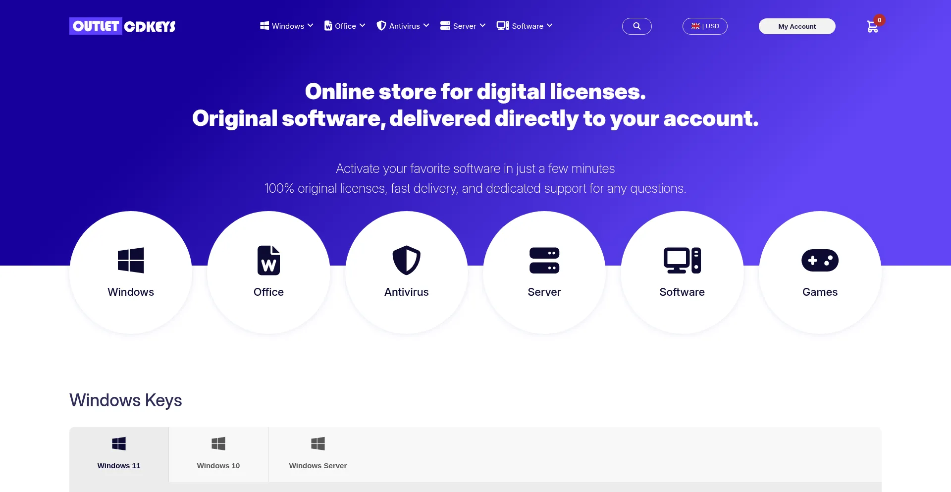 分析表明 outletcdkeys.com 作为电子商务平台运营,促进商品或服务的在线交易。该网站实现了购物车功能、支付处理系统和产品目录功能,这些是商业零售运营的典型特征。