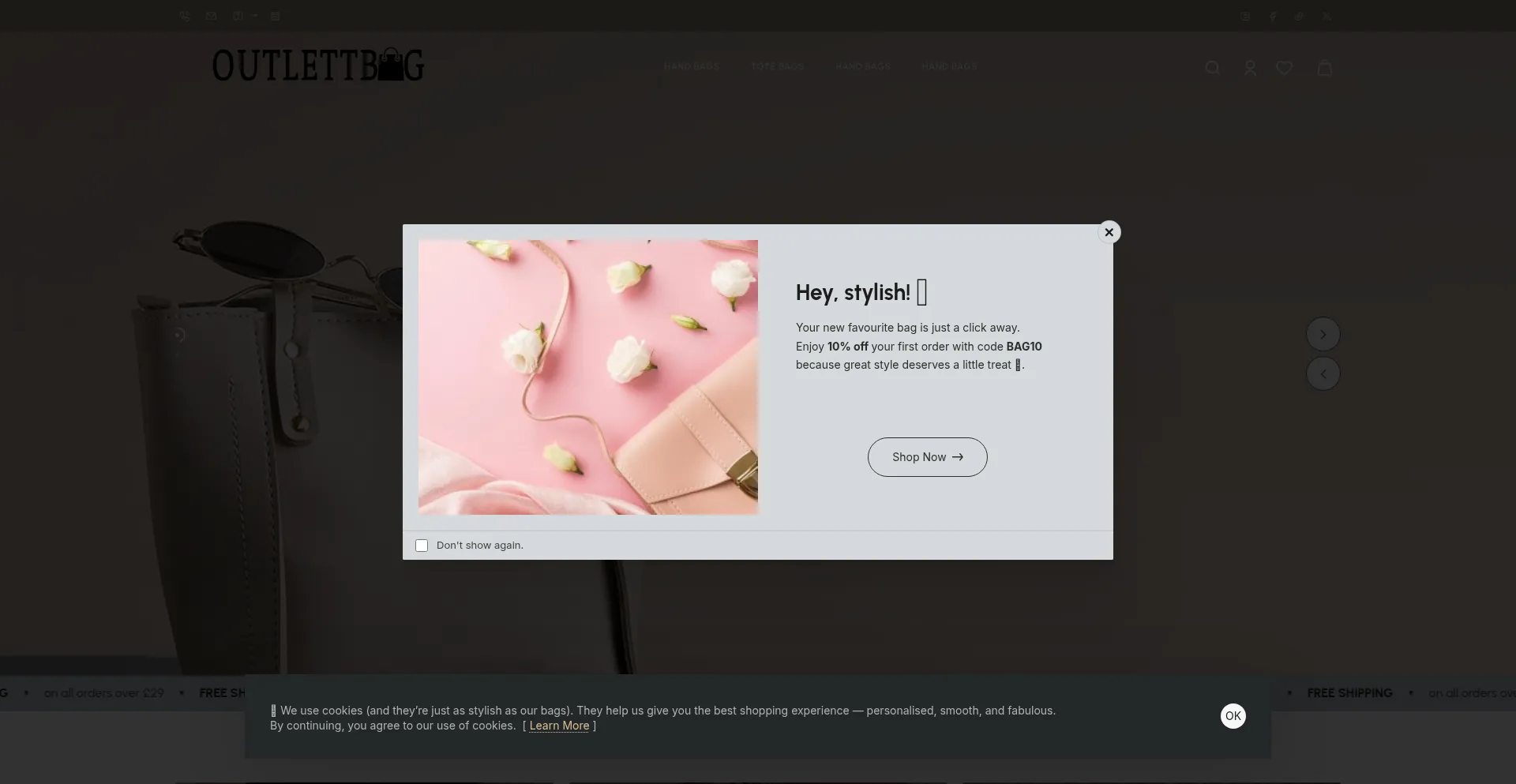 该网站实现符合GDPR或CCPA等隐私法规的cookie同意机制。这表明 outlettbag.com 遵守数据保护标准并为用户提供对个人数据收集实践的控制。