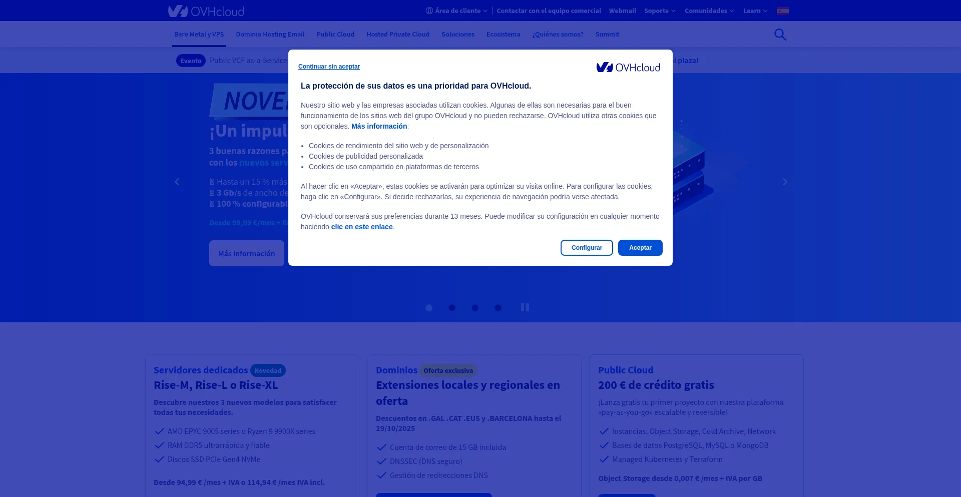 OVHcloud ofrece más de 80 servicios con la mejor relación rendimiento-precio, abiertos y reversibles: dominios, VPS, servidores dedicados, cloud IaaS y PaaS.