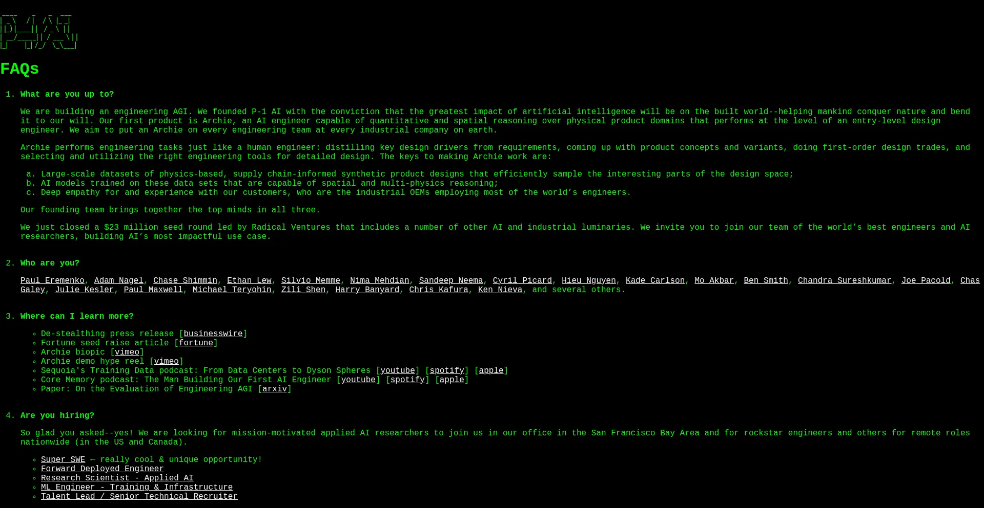 网站上存在社交媒体链接表明 p-1.ai 在社交媒体上维护官方账户,这是可信度和参与度的积极信号。