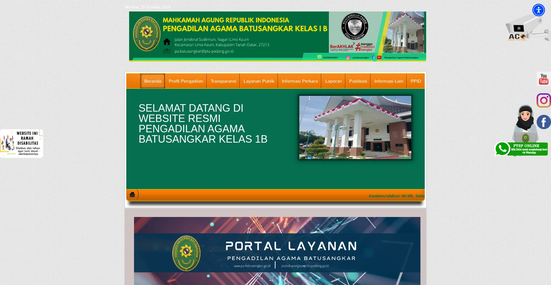 网站上存在社交媒体链接表明 pa-batusangkar.go.id 在社交媒体上维护官方账户,这是可信度和参与度的积极信号。